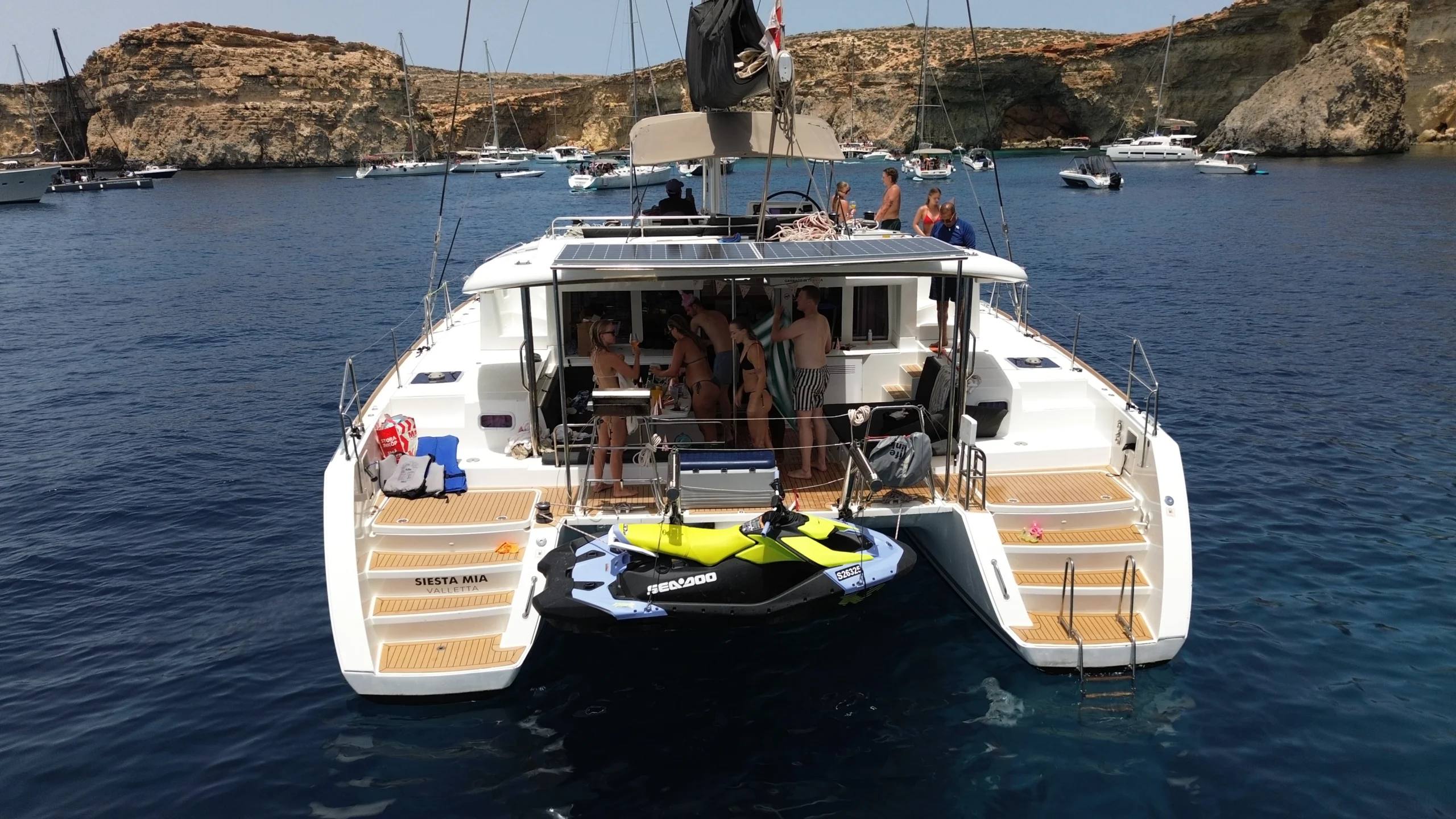 Her generous outdoor spaces provide plenty of room for sunbathing, lounging, and socializing, while the included Jet Ski adds an exciting thrill to your charter. Whether you’re gliding along Malta’s coastline, anchoring in a quiet bay, or enjoying water sports with friends, the Siesta Mia delivers the ultimate combination of comfort and adventure.