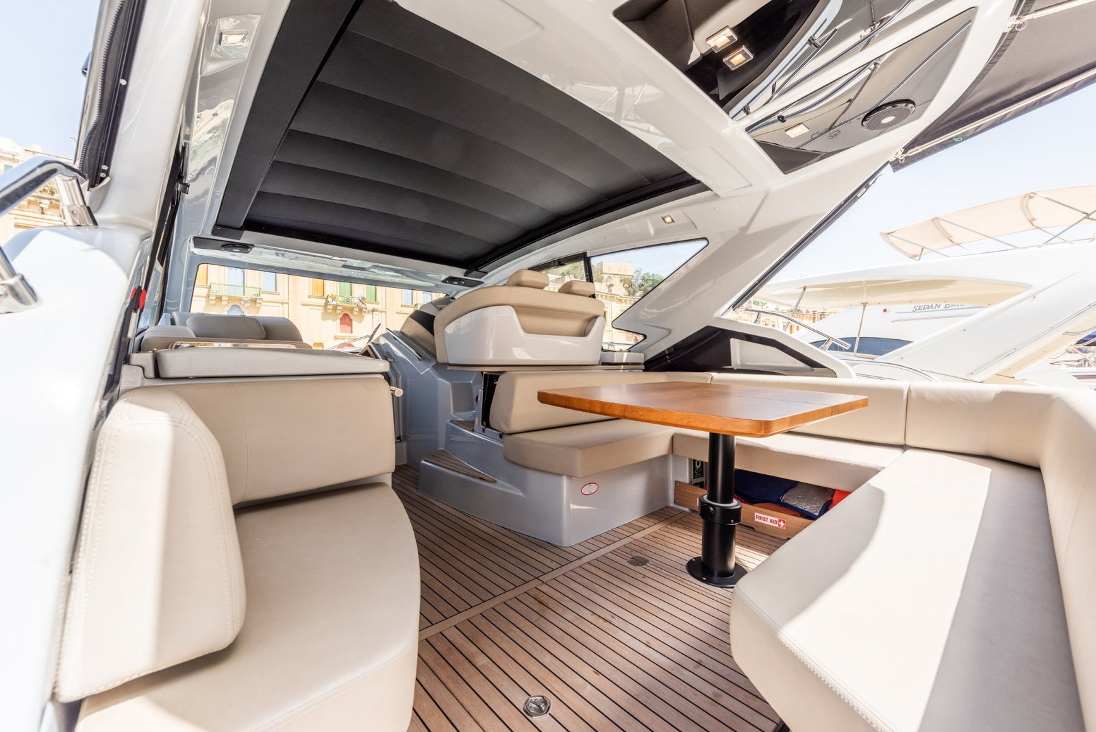 Discover the extraordinary features that make the M44 HT from our high-end yacht charter fleet the epitome of sailing excellence. This magnificent vessel is the secret to successful yacht charters, offering an unrivalled cruising experience. With its iconic profile, elegant interiors, and intelligent space utilisation, the M44 HT ensures optimal performance while maintaining low fuel consumption. Experience ultimate comfort and versatility on board the M44 HT. The soft top canopy provides maximum shading in the cockpit and can be fully opened, transforming the yacht into an authentic open-top paradise. When you desire a shaded retreat, the well-insulated sunroof creates a cozy, enclosed space, perfect for relaxation. Seating extends seamlessly from the cockpit to the bow deck, all covered by the retractable top. On the left side, a fully equipped kitchen area awaits, while a luxurious chaise lounge beckons sunbathers to indulge under the open sky. The navigation area boasts a state-of-the-art setup, blending analog instruments with digital monitors, ensuring precise control and real-time information for an effortless sailing experience.