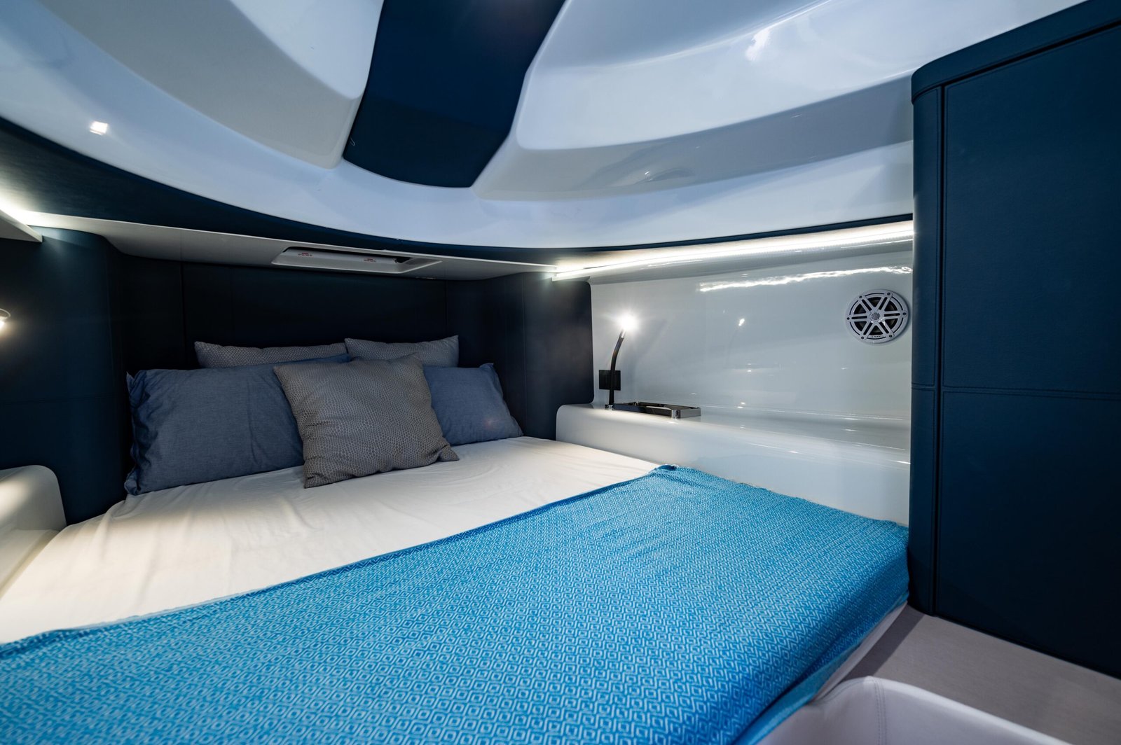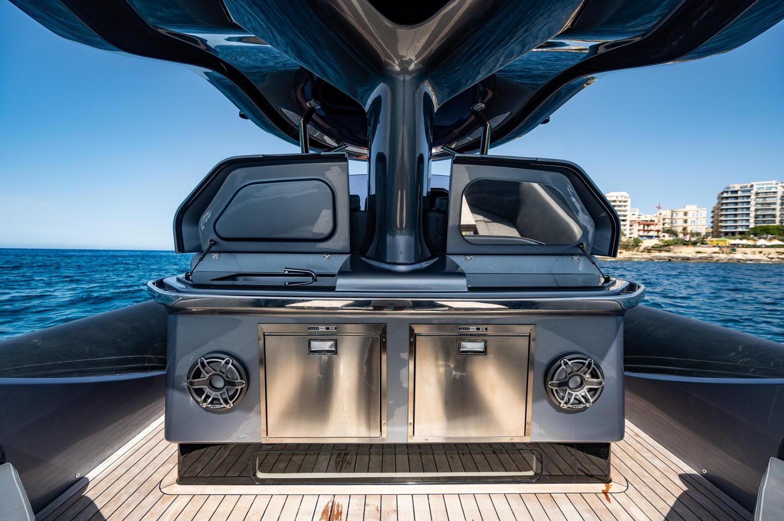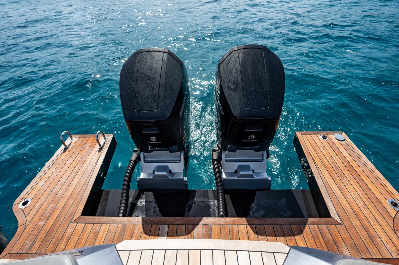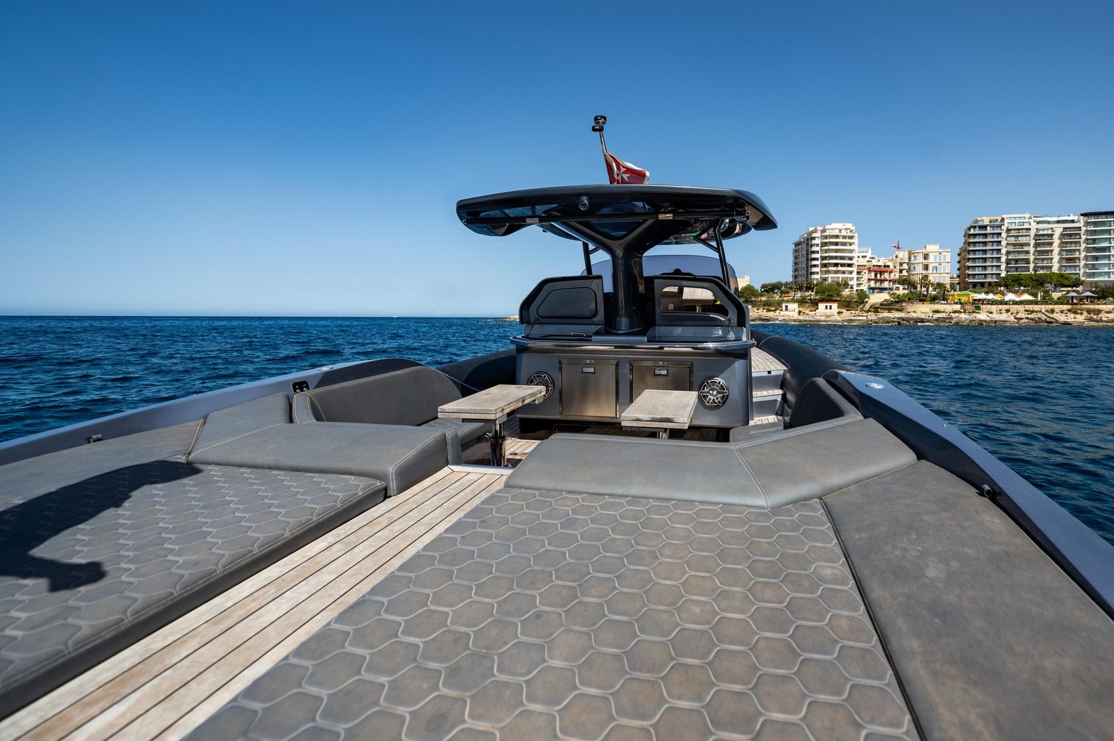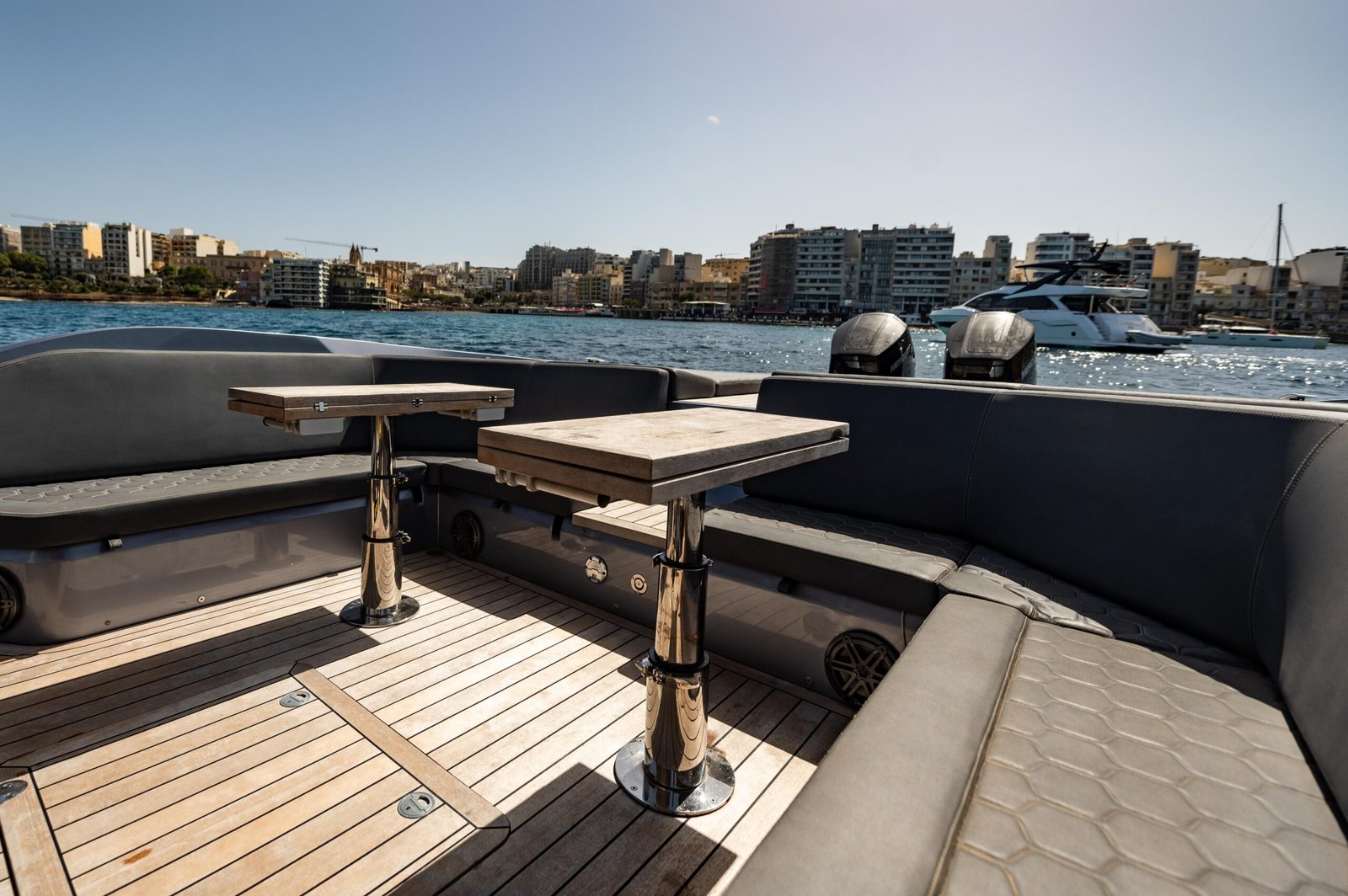 The SACS Strider 15 “Swayed” has a strong character that takes shapes with style, energy, and power. All the sinuous lines of the boat converge on the big “beach area” at stern and at bow to create two precious and functional spaces. With its luxurious design, comfort and powerful engines “Swayed” will take you anywhere around the islands during your day charter. Fuel will be charged at the end of the charter as per consumption.